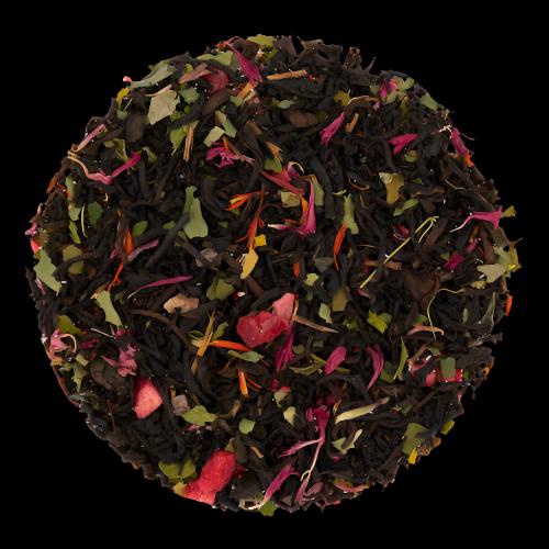Ingredients: Black tea, Pomegranate, Cherry stems, Moringa, Cocoa beans, Cranberry, Cornflower + Safflower petals, Natural flavors(organic compliant).