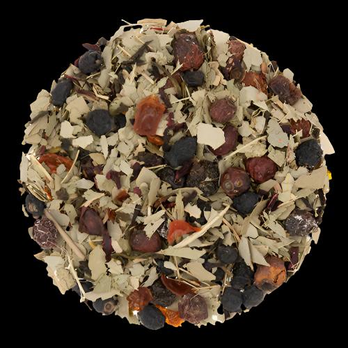 Ingredients: Eucalyptus leaves, Blueberries, Currants, Green tea, Hawthorn, Rosehip, Hibiscus, Natural flavors (organic compliant).