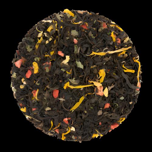 Ingredients: Black tea, Lemon balm leaves, Strawberry pieces, Calendula + Sunflower petals, Natural flavors (organic compliant).