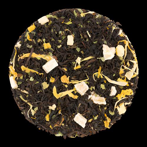 Ingredients: Black tea, Mango pieces, Lime leaves, Calendula + Marigold + Sunflower petals, Natural flavors (Organic Compliant).