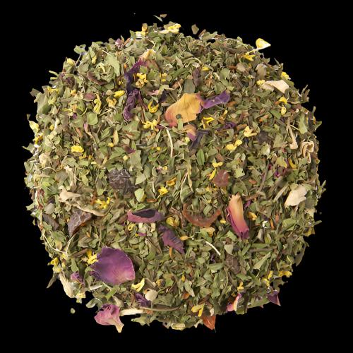 Ingredients: Peppermint + Spearmint leaves, Rosehip pieces, Ginger, Rooibos, Rose + Calendula + Sunflower + Osmanthus petals. (Decaf)